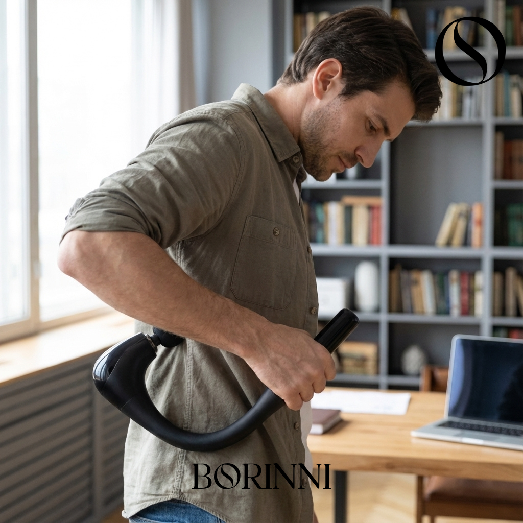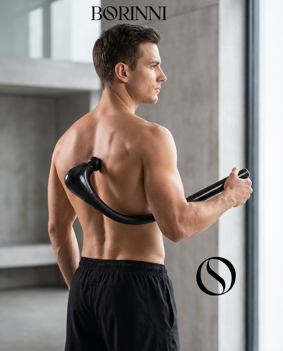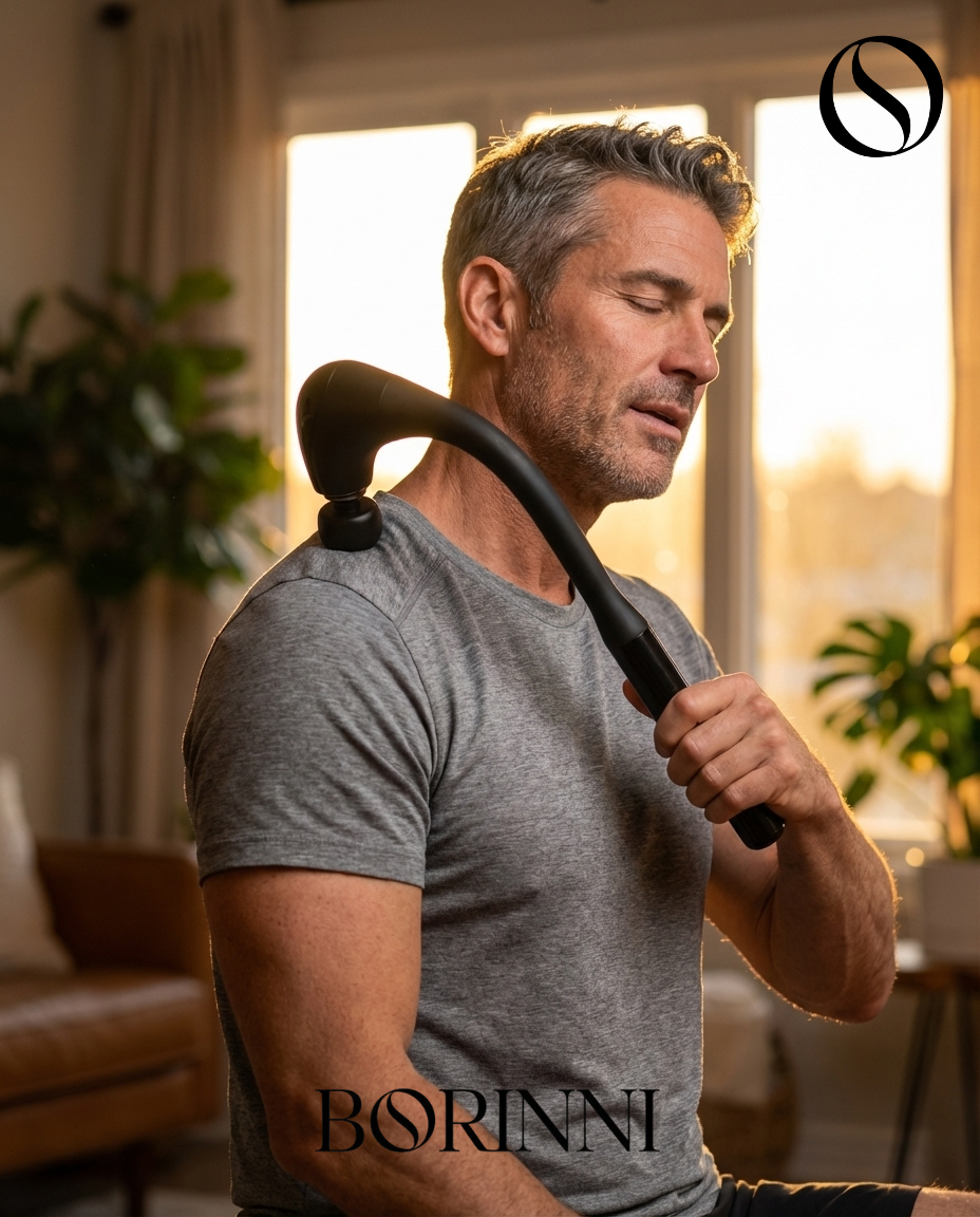No es grave, pero es una molestia que cansa. Tener que esperar a que alguien más tenga tiempo para hacerte un masaje, o intentar hacerlo tú mismo con aparatos cortos que te obligan a torcer el brazo, generando más tensión de la que alivias.